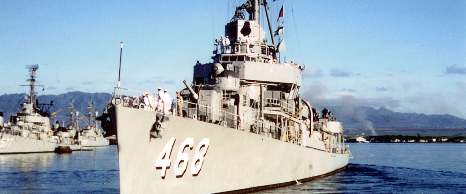 Although history generally considers The Cold War to have begun in 1947, for USS Taylor, recommissioned as DDE 468 in 1951, The Cold War began in 1953, after her Korean War service. During this time between the Korean War and the Vietnam War, Taylor made numerous deployments to the western Pacific, conducting goodwill port visits, joint training exercises with allies, and “Taiwan Patrol” missions in the Formosa Strait (now called the Taiwan Strait). In 1962, the same year USS Taylor reverted back to her destroyer designation as DD 468, the ship was assigned to Operation Dominic, a series of nuclear tests conducted in the mid-Pacific. All of these missions were intended to support the objective of keeping Communist ambitions in check. USS Taylor Cold War History.