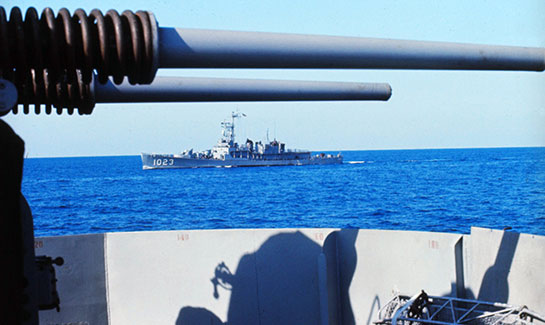 Taylor’s missions in Vietnam included many hours of gunline support for troops ashore, as well as plane guarding for carriers launching aircraft from Yankee Station in the Gulf of Tonkin.